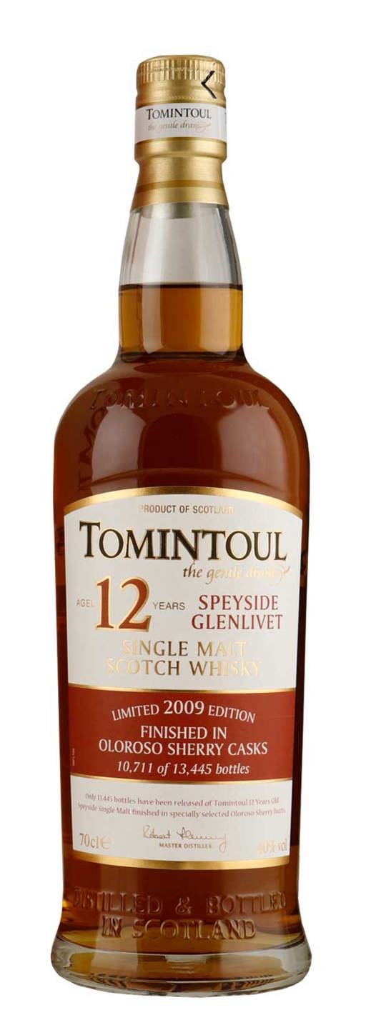 Een gelimiteerde hoeveelheid Tomintoul van 12 jaar oude malts wordt de laatste 18 maanden gelagerd op Oloroso sherry vaten.