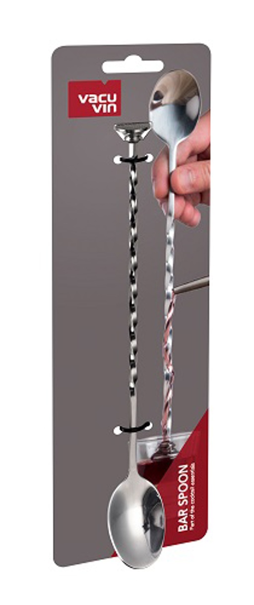 Deze Vacu Vin Cocktail Lepel is ideaal voor het maken van cocktails met laagjes. Er zit een spiraalvorm in de stengel van de cocktail lepel, waardoor de cocktail ingrediënten langs de lepel naar beneden lopen. Ook is de cocktail lepel 34 cm lang en dat maakt de lepel ideaal om mee te roeren, zelfs in hoge longdrink glazen. De lepel is tevens te gebruiken als stamper.