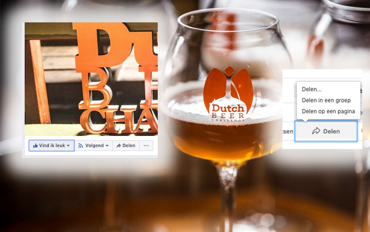 De speciale live-stream van de uitreiking zal te zien op de Facebookpagina van de Dutch Beer Challenge. Als je voor 2 april de pagina leuk vindt (druk op de ‘vind-ik-leuk’ knop bovenaan de pagina) zul je op de dag zelf een melding krijgen dat de stream van start gaat. Wil je de live-stream delen als trotse brouwer, bezoek dan dezelfde Facebook pagina op 2 april iets voor 14.00 uur en druk onderop bij het aankondigingsbericht op ‘delen, en dan ‘delen op je pagina’. Op die manier krijg de uitreiking de maximale aandacht die het Nederlandse bier verdient.