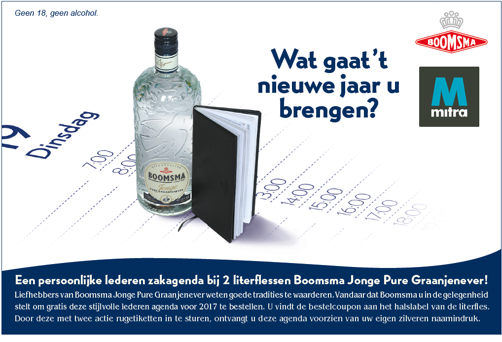 stelt om gratis deze stijlvolle lederen agenda voor 2017 te bestellen. Je vindt de bestelcoupon aan het halslabel van de literfles.
