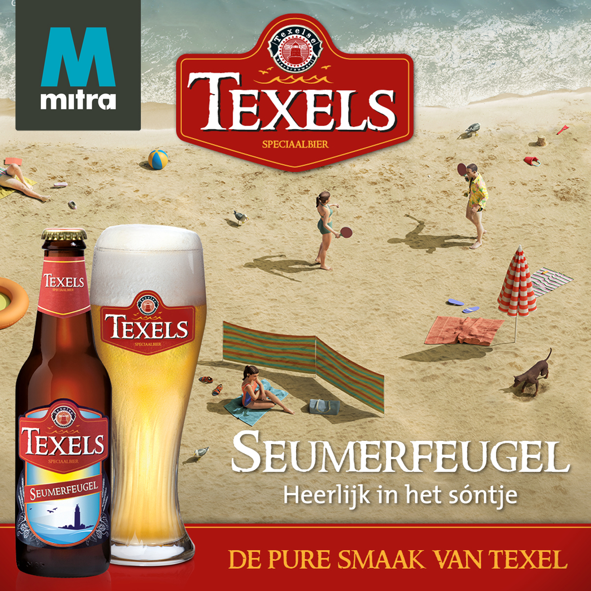 De Texelse Bierbrouwerij lanceerde onlangs haar nieuwe zomerbier: Texels Seumerfeugel, een dorstlessend tarwebier dankzij de combinatie van frisse citrus en zeekraal met een verrassende, lichtzilte afdronk. Seumerfeugel betekent badgast op z’n Texels, een fenomeen dat Texel zeer bekend is. Maandenlang zie je ze niet. En opeens, zodra de zon begint te schijnen, komen ze op heel Texel tevoorschijn: Seumerfeugels. Badgasten op weg naar het strand. Op zoek naar verkoêling, frisse wiend en de zilte zéé. En dan heerlijk in het sóntje met een koud biertje in de hand.