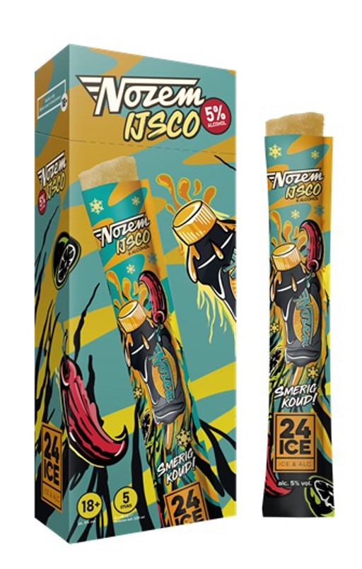 In samenwerking met De Kuyper Royal Distillers heeft 24 ICE frozen cocktails ontwikkeld in de smaken Mojito, Strawberry Daiquiri, Limoncello, Pina Colada en Vodka Energy. De cocktail ijsjes van 24 ICE bevatten 5% alcohol en slechts 53 calorieën! Deze unieke combinatie zorgt voor een verfrissende en coole beleving, elke keer opnieuw!