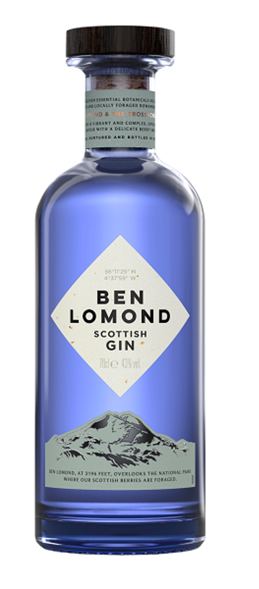 De fles en sluiting van Ben Lomond Gin zijn ontworpen om het natuurlijke gevoel van het gebied Loch Lomond & The Trossachs verder te illustreren. Dit ontwerp is voltooid met behulp van een levendige blauw/paarse fles geïnspireerd io de kleur van de heide die Ben Lomond in de zomer bedekt. De houten sluiting van de fles die moet het natuurlijke gevoel van het Trossachs National Park opwekken.