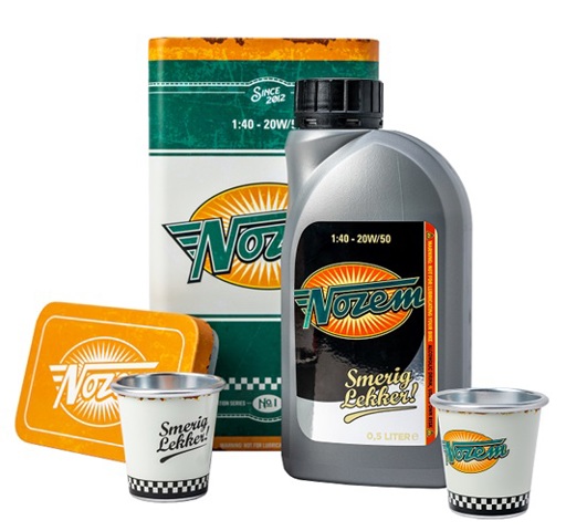 Nozem Oil is volledig bedacht en ontwikkeld door de organisatie van de Zwarte Cross. Er gingen uiteraard veel gezellige proefsessies aan vooraf, maar in 2012 was het dan eindelijk zover, de ideale Nozem Oil smaak was daar. De productie kon gestart worden en vlak voor de Zwarte Cross in 2012 rolden de eerste flesjes van de band.