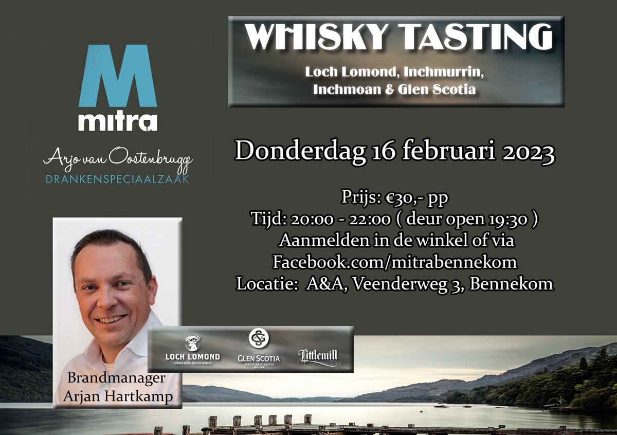 Mitra drankenspeciaalzaak Bennekom organiseert op 16 februari 2023 een whisky tasting met als thema Loch Lomond & Glen Scotia.